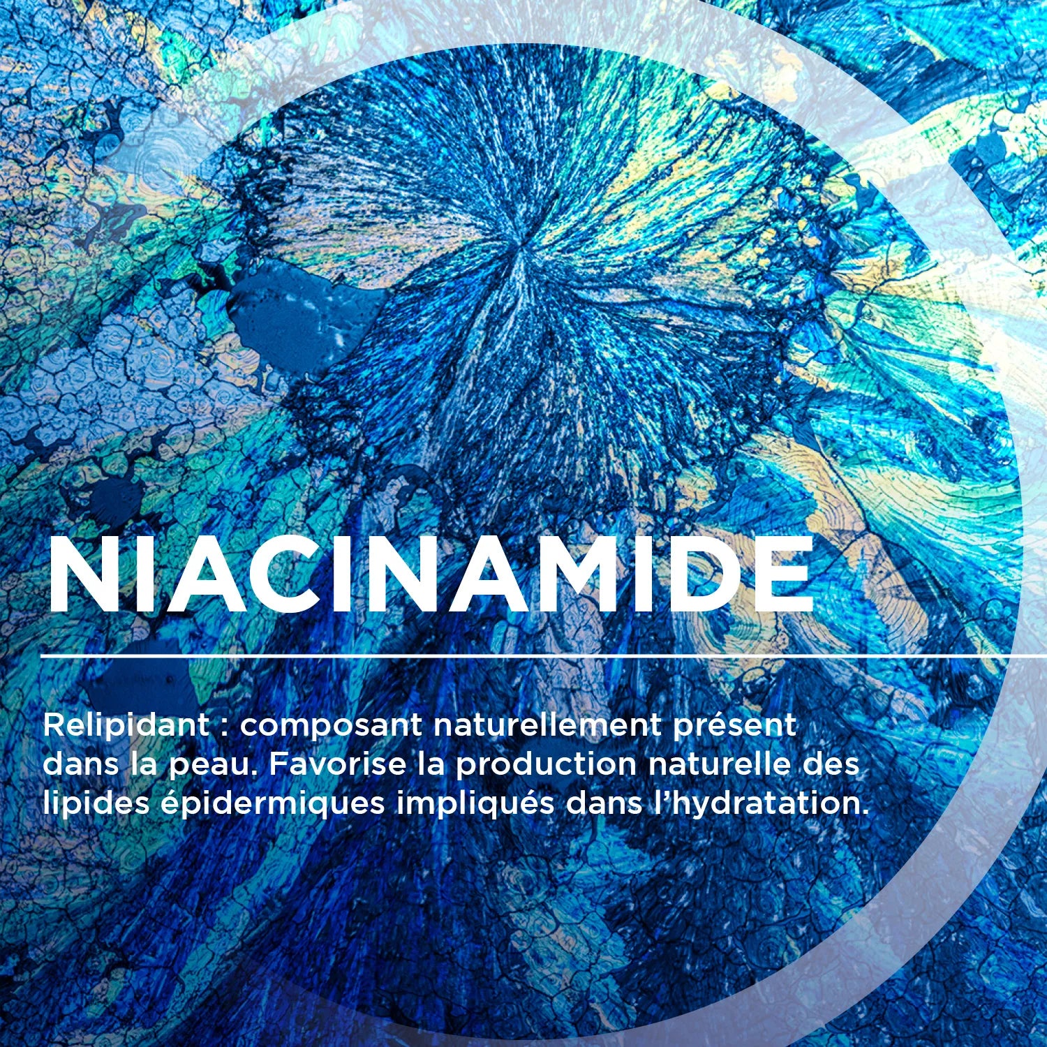 L'association de vitamine PP et de squalane contribue à renforcer la barrière naturelle de la peau en consolidant le film hydrolipidique de l'épiderme.